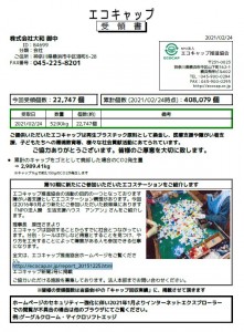 弊社ではボランティアの一環として、本支店はもとより現場事務所でもキャップを集め、NPO法人エコキャップ推進協会が行っている子供食堂支援・難病支援活動等のエコキャップ運動に参加しております。 2016年より開始し、今回で約40.8万個になりました。 これからもキャップ集めを通して、再資源化に貢献すると共にマイクロプラスチック問題等、考える機会にしています。