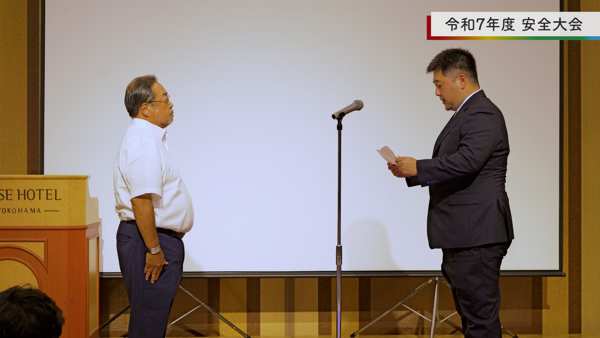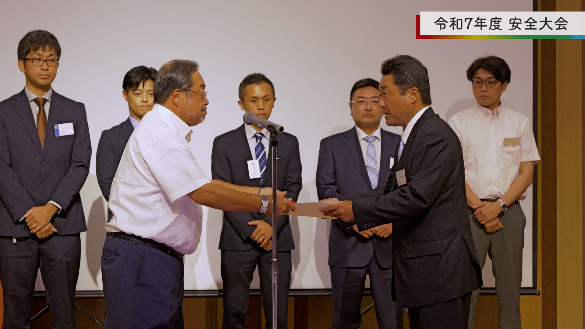 安全大会では、優秀な協力業者・代理人・社員への表彰をはじめ、現場パトロール報告や安全に関する意識啓発、ルールの再確認などを行いました。