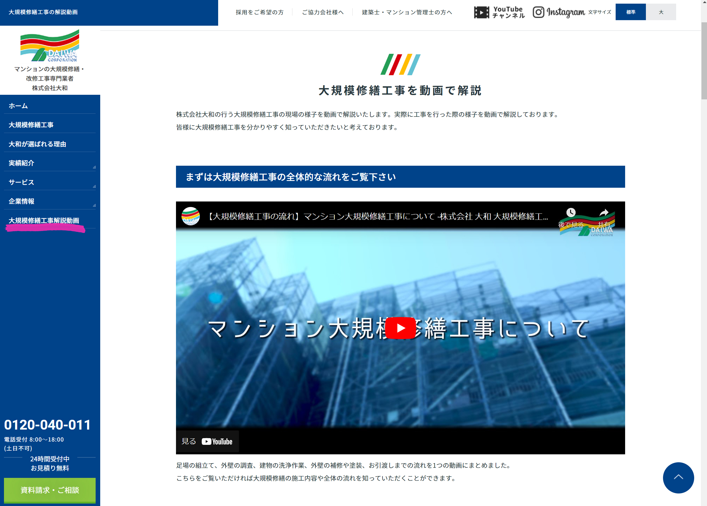 大規模修繕工事を動画で見られるページを追加しました