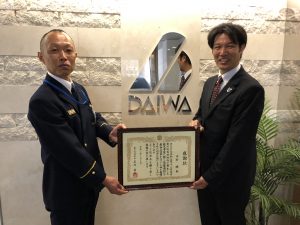 弊社社員が人命救助に対し感謝状をいただきました。